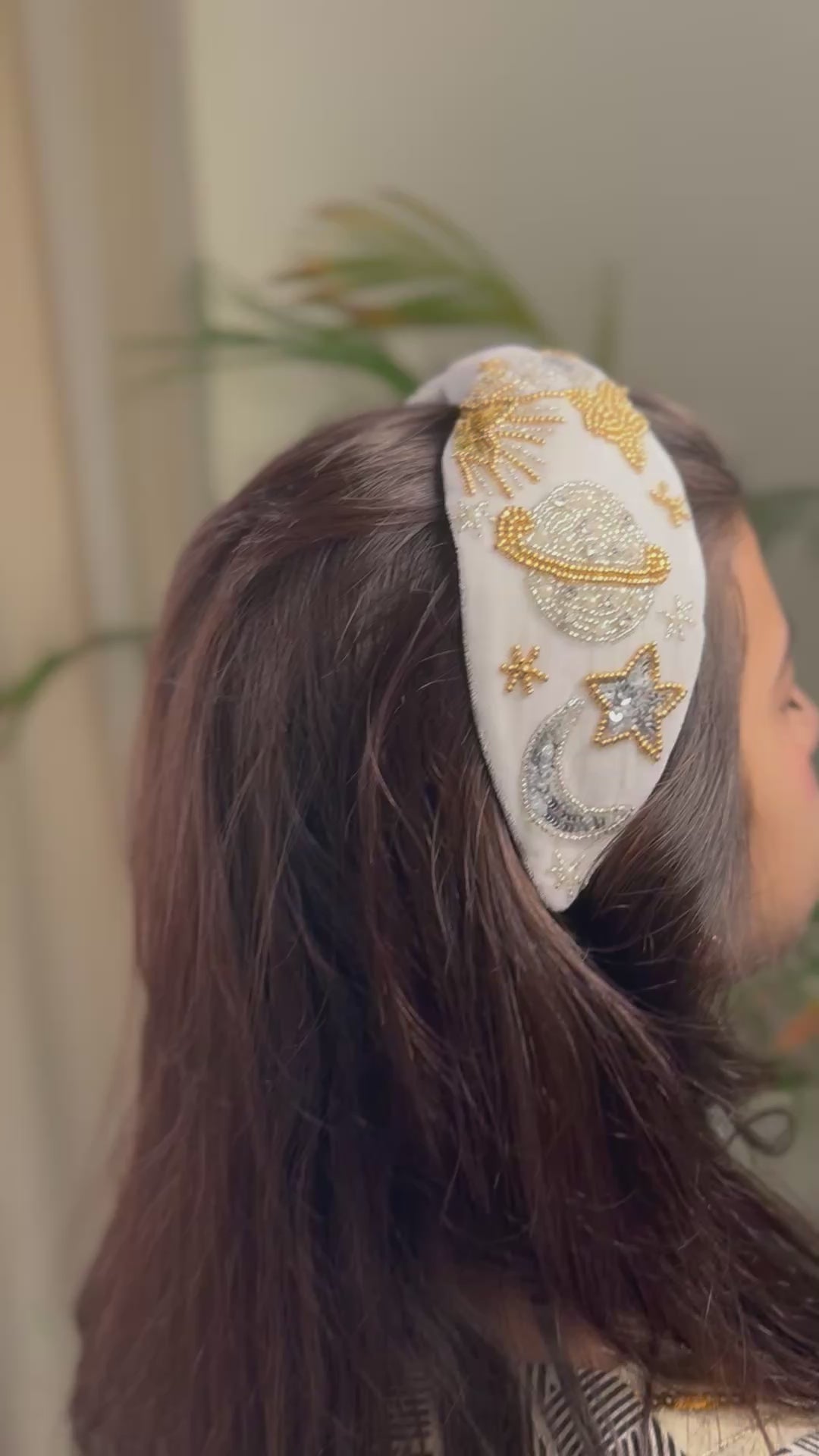 تاج مخمل أبيض مع شك فضي وذهبي